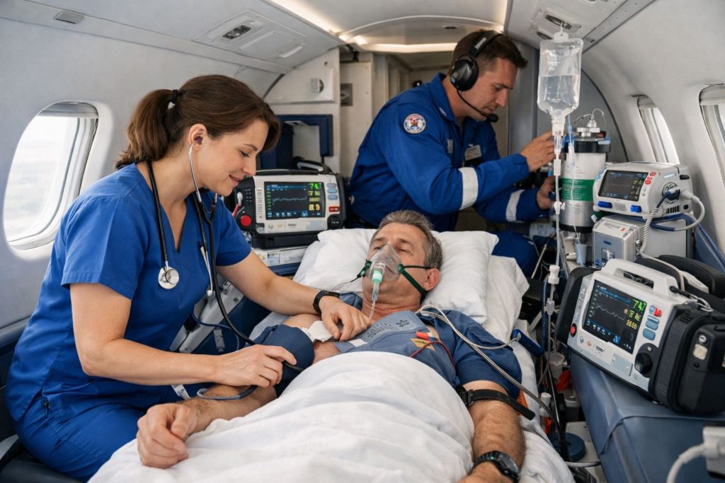 Providing cost-effective, high-level clinical supervision for stable patients on commercial airlines.